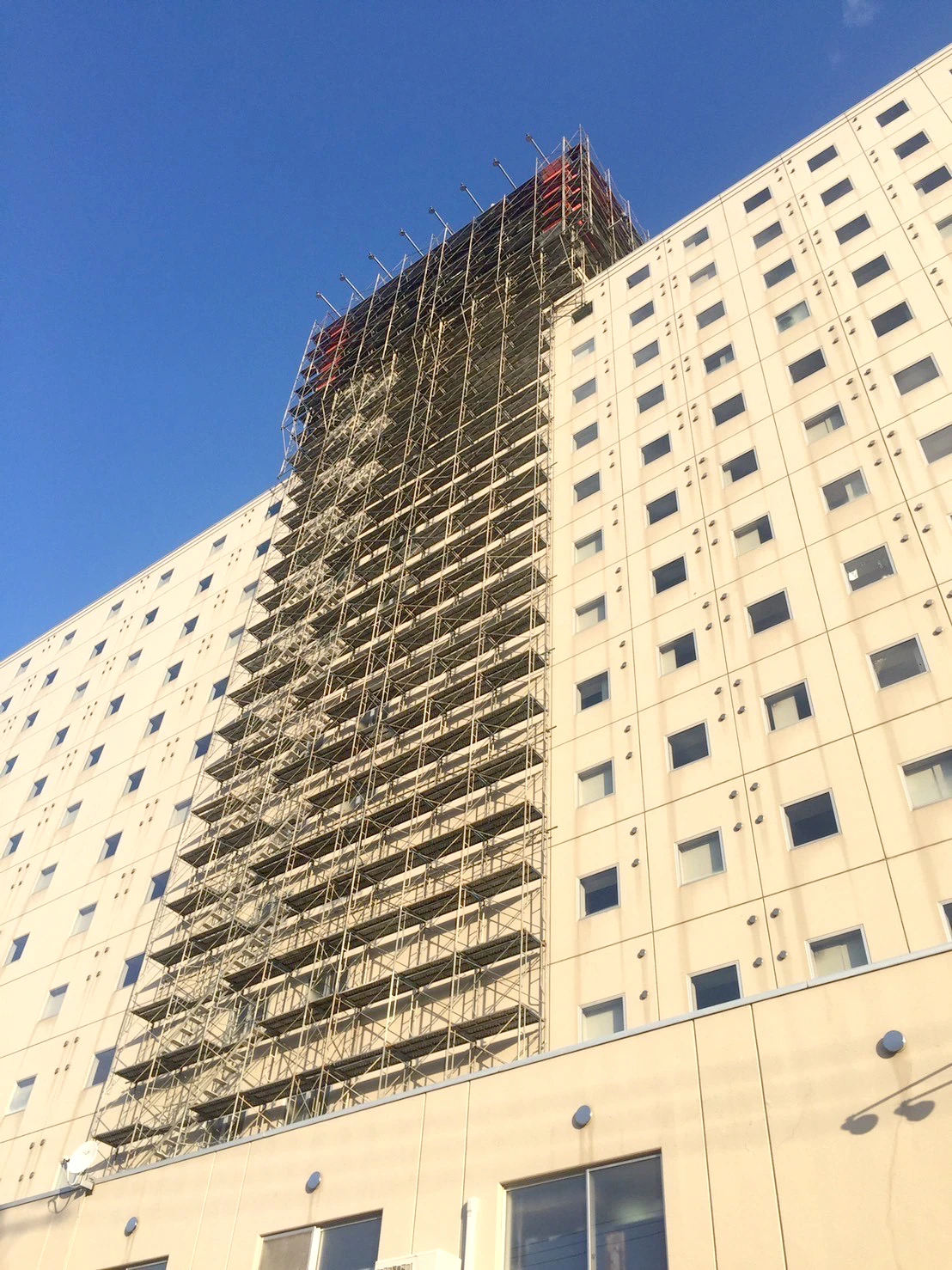 大規模工事において最初に行われる工事が足場架設工事です。足場は施工品質や安全性においてとても重要な役割を持ちます。また、マンション修繕工事等では作業効率だけではなく、居住者の方々への配慮も忘れません。